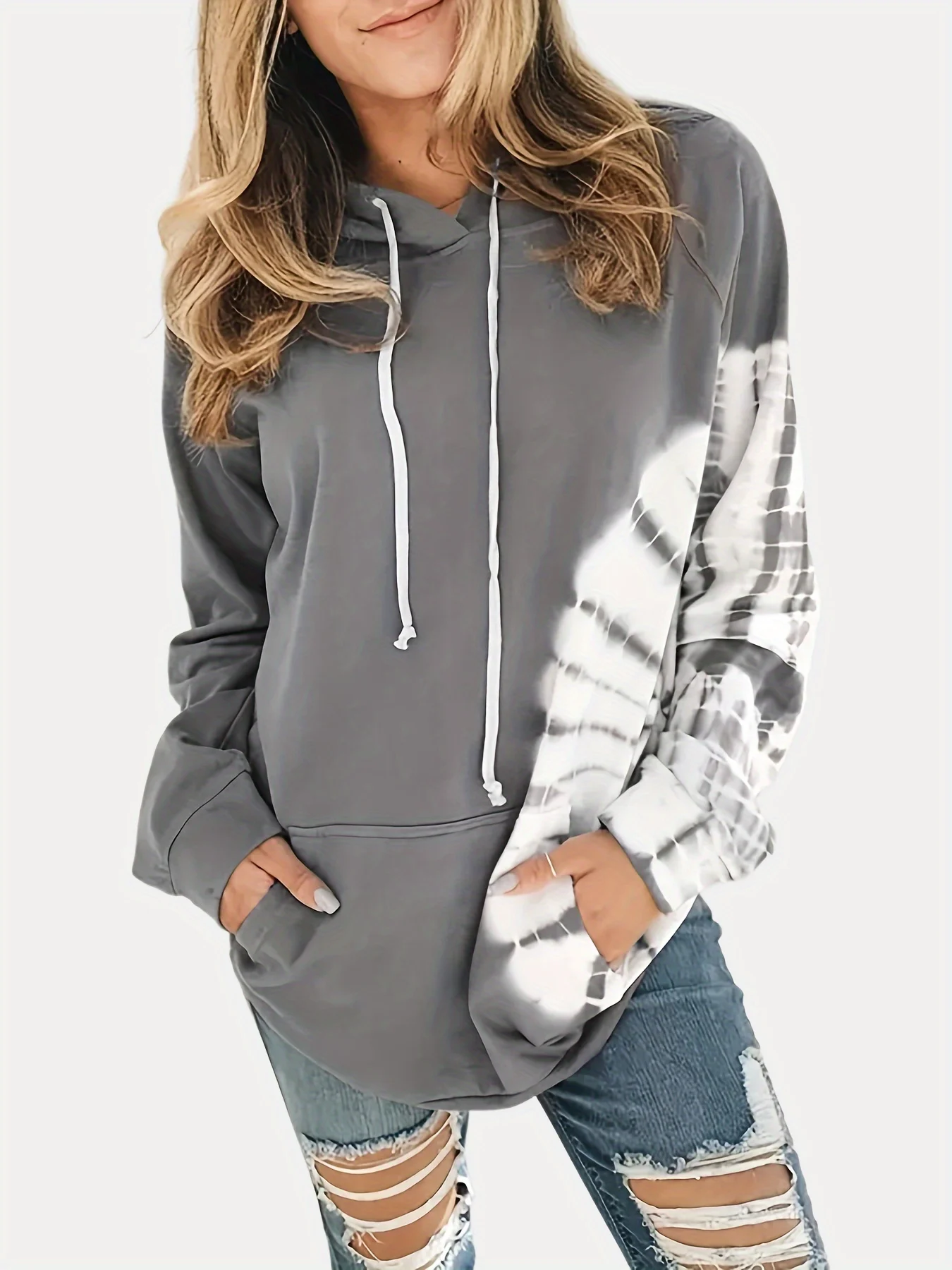 Plus Size Long Sleeved Printed Hoodie