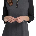 Be the first to review “Plus Size Notched Button Color Block Casual Top” Cancel reply