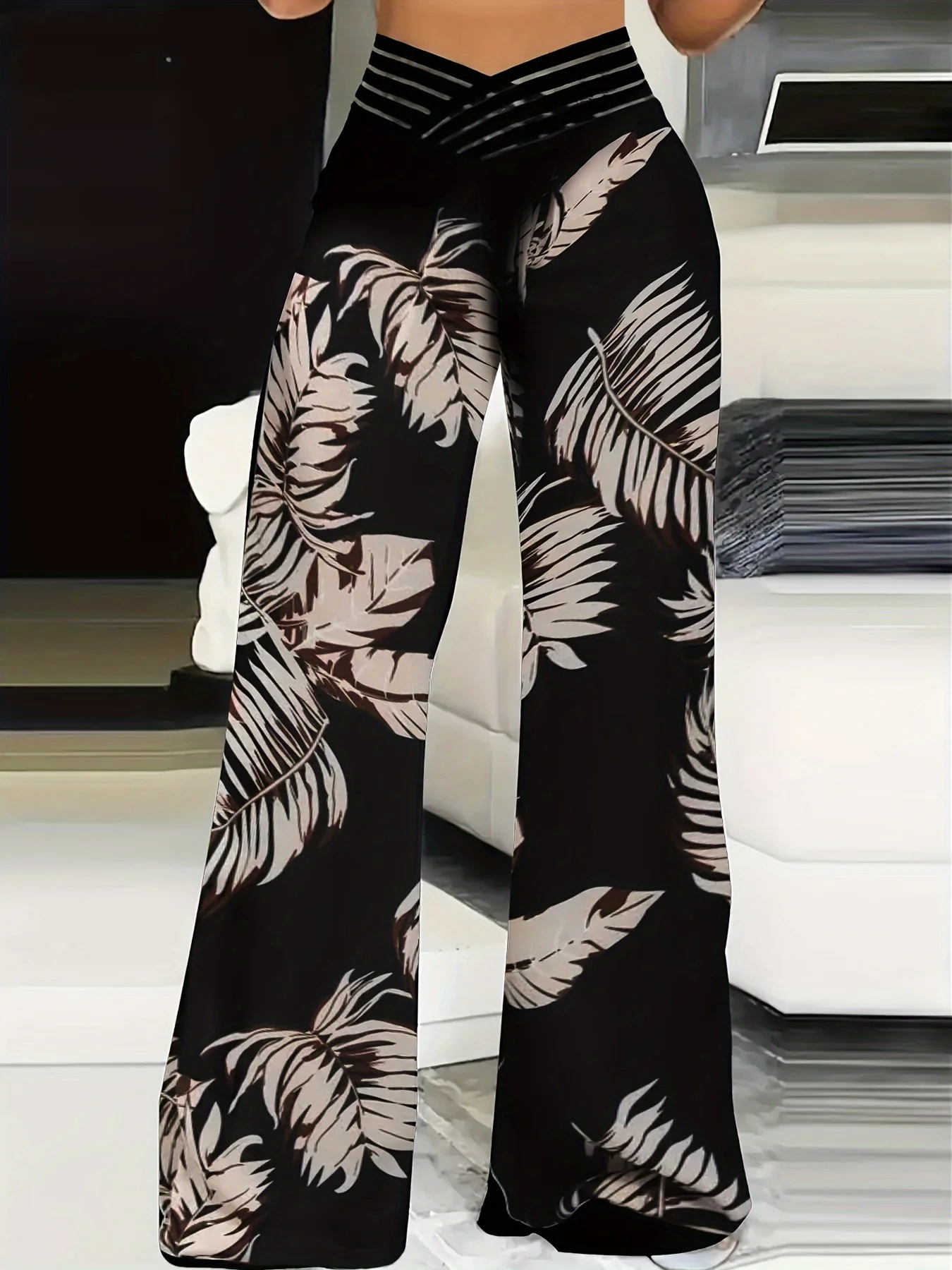 Plus Size Women Casual Print Criss Cross High Waist Pants Wide Leg Pants