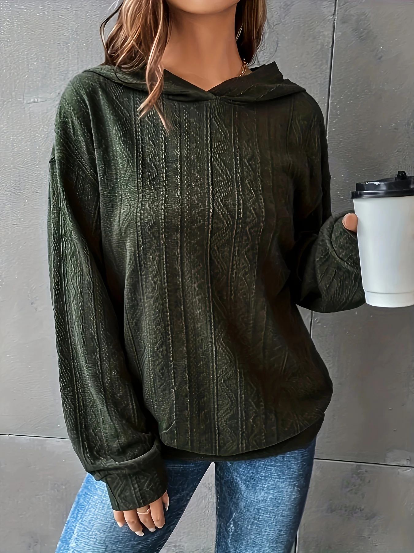 Plus Size Women Solid Drop Shoulder Hoodie
