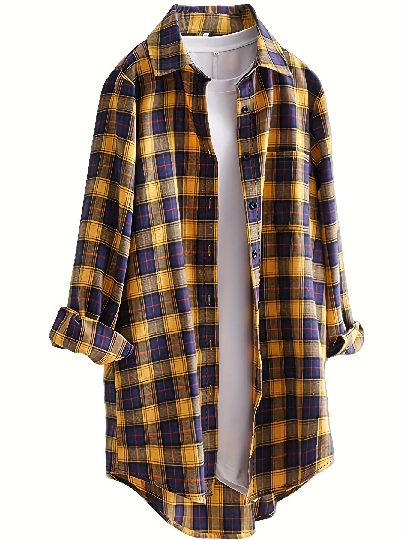 Plus Size Women’s Plaid Long Sleeve Button Down Shirts Blouses