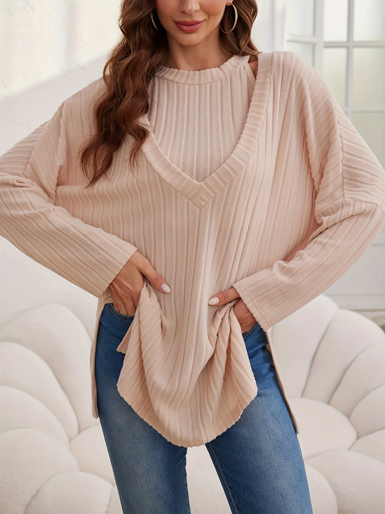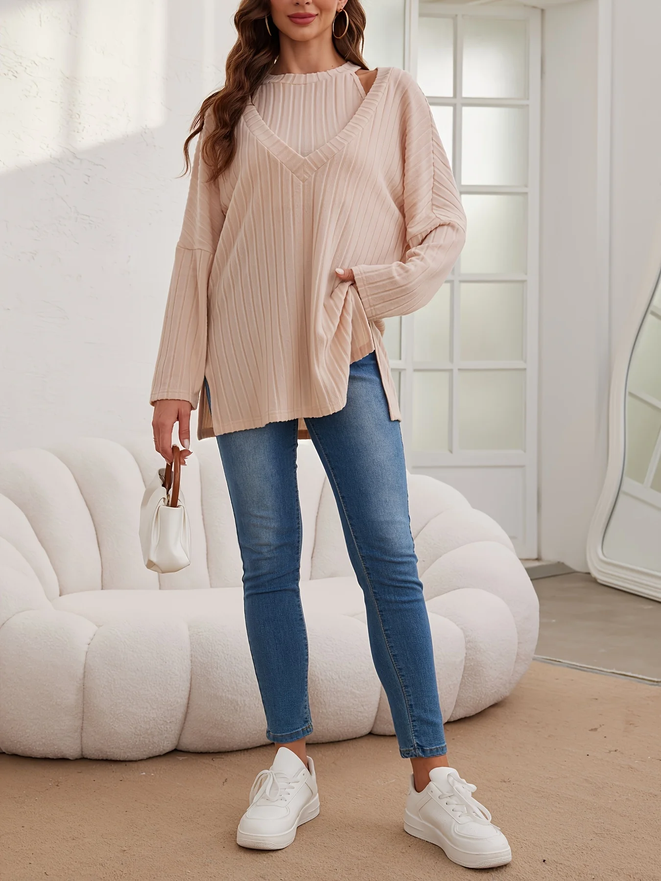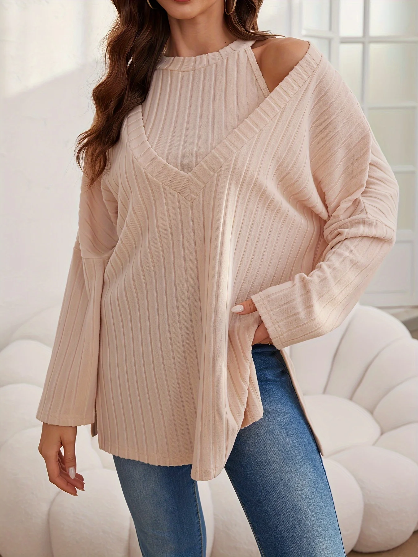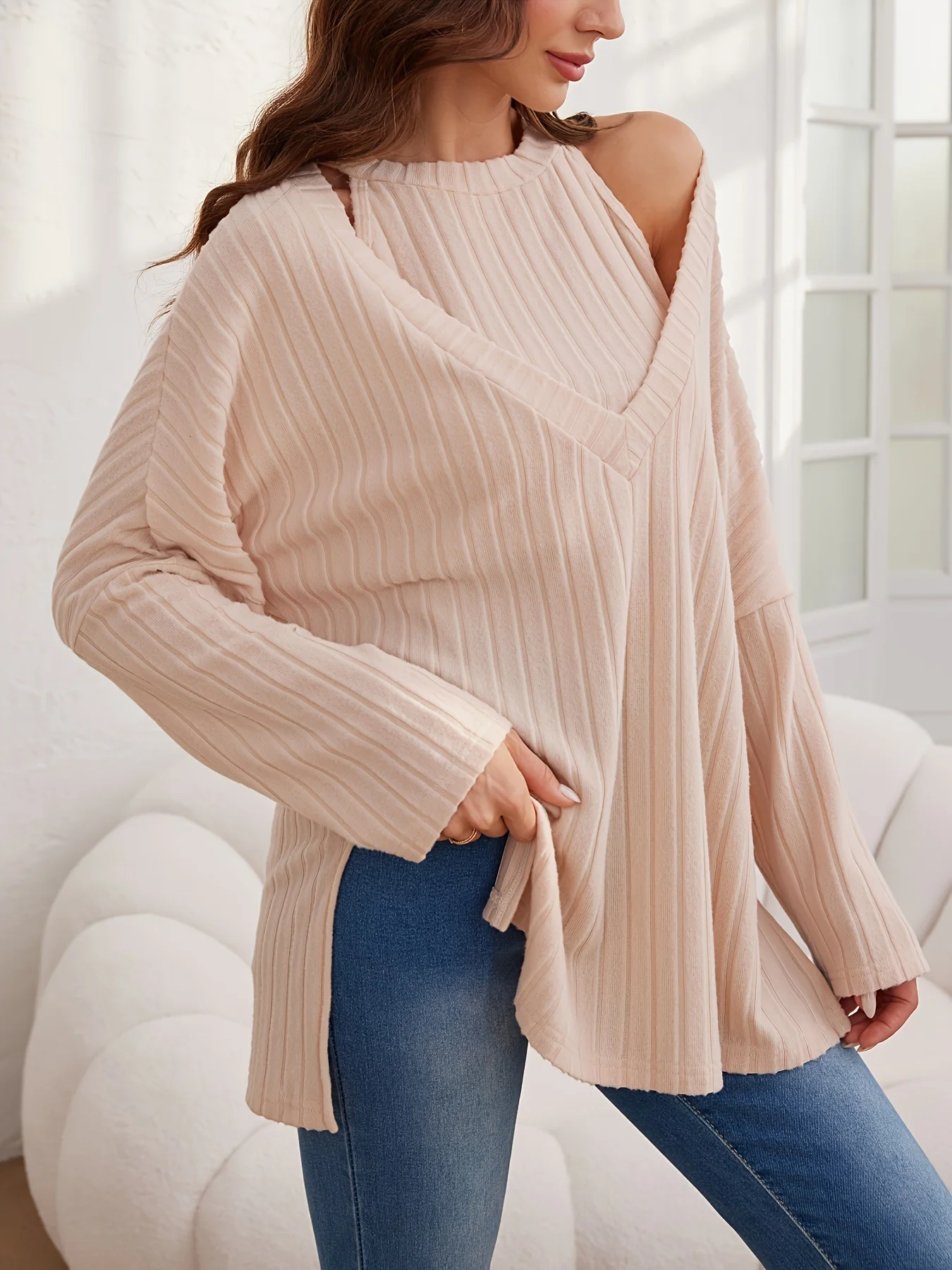 Plus Size Women’s Solid Knit T Shirt & Halter Top